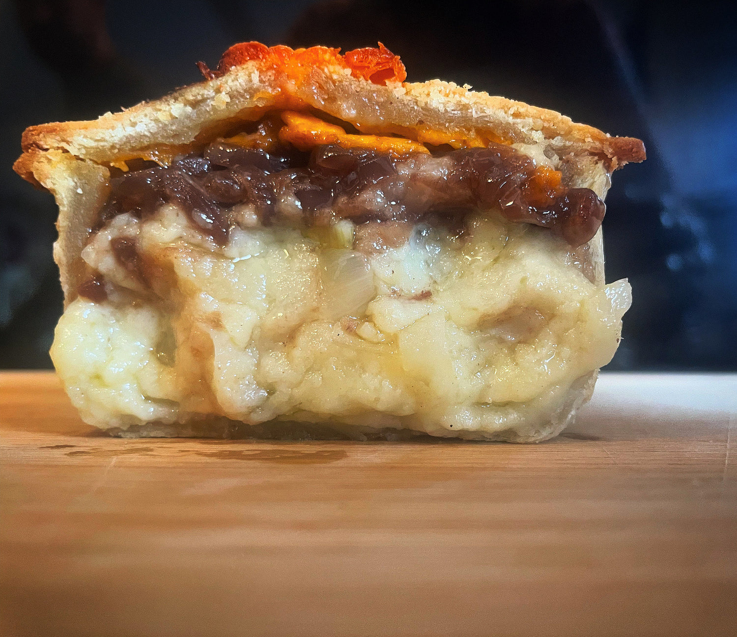 The perfect concoction of Procter's Cheeses award winning Lancashire cheese; Crumbly, Creamy, Kick-Ass Mature and Kick-Ass Smoked combined with Butter-poached Onions and Potato, topped with Caramelised Red Onion and Red Leicester, and seasoned perfectly to bring your tastebuds to life!