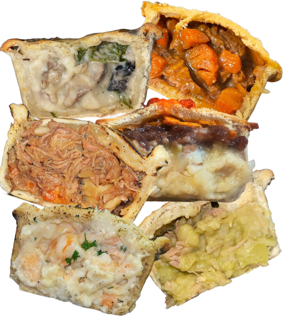 Each filling has been created and carefully made by myself, and cased in our own crisp, buttery, shortcrust pastry. We then part bake the pies, ready for you to easily finish off at home.