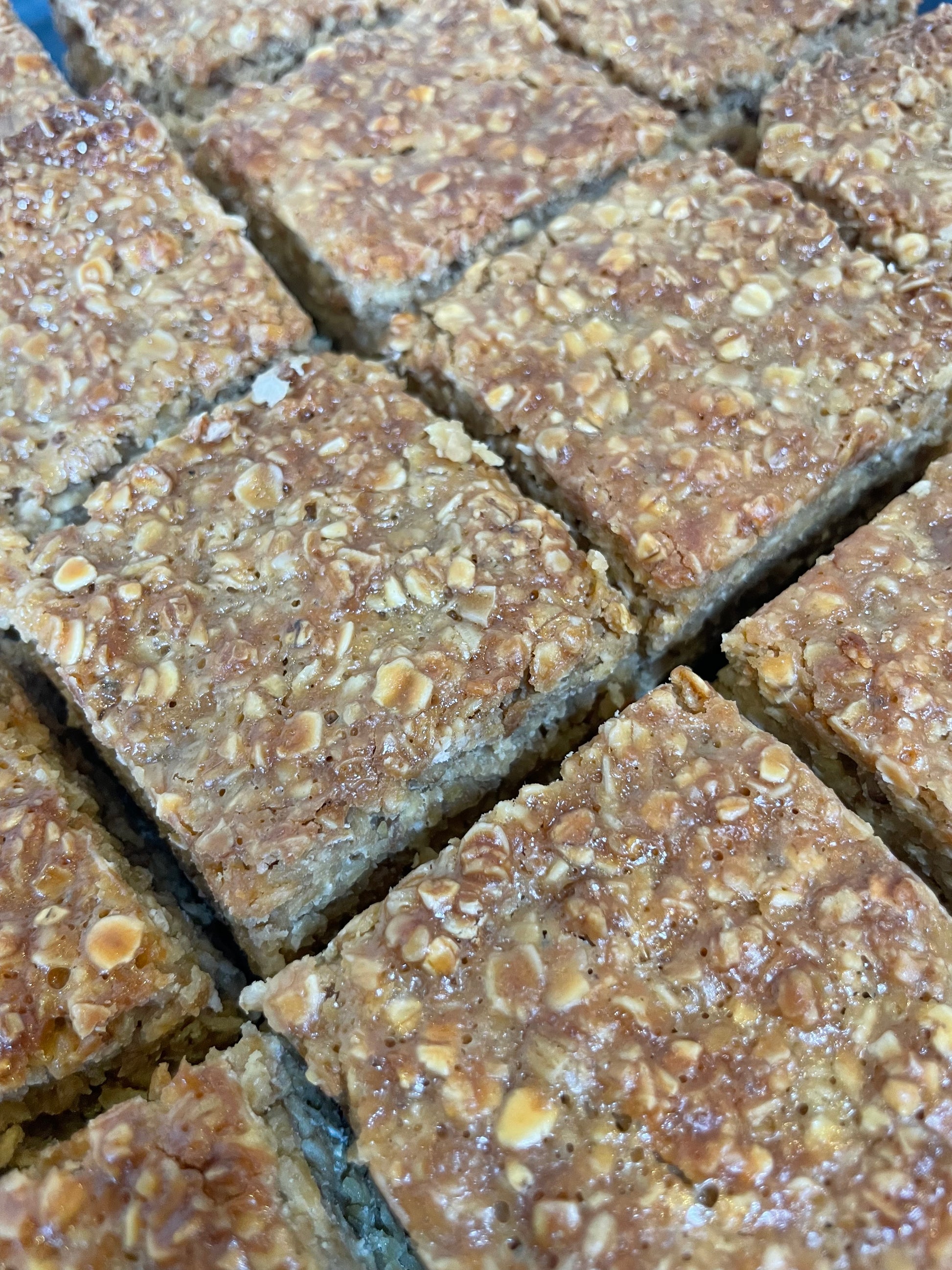A classic Flapjack recipe of Rolled Oats, mixed with Butter and baked with Golden Syrup and cooked to perfection - a great partner to a cup of tea!