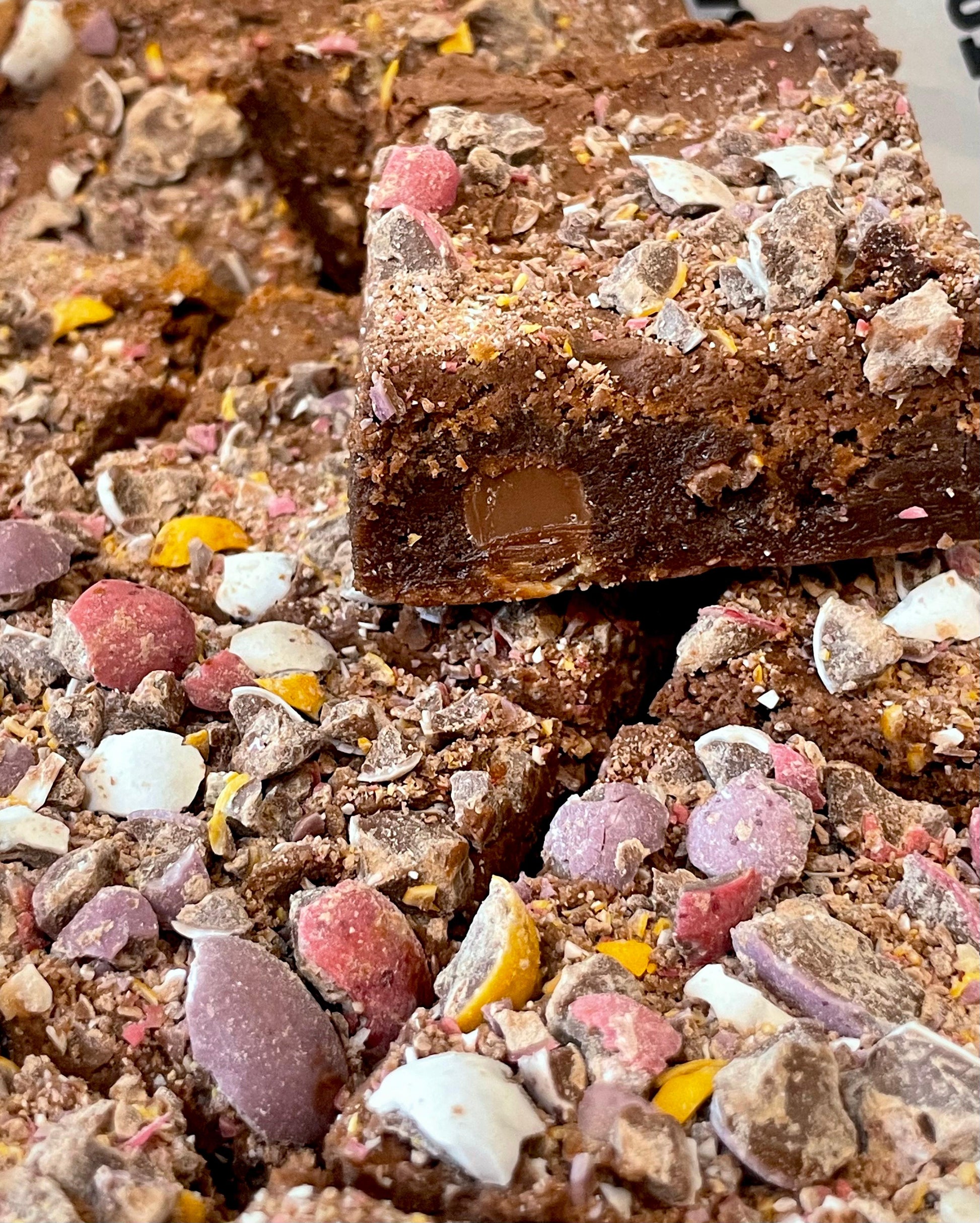 Our rich, fudgy brownie, baked with Cadbury Mini Eggs then topped with smooth chocolate buttercream and a generous sprinkle of crushed Mini Eggs for the perfect crunch.