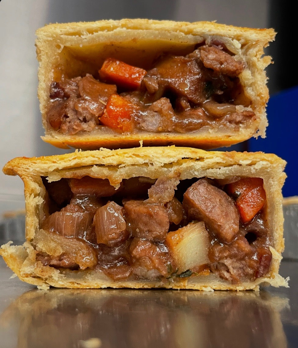 This Christmas Casserole Pie is bursting with festive flavour! With Pork Sausage, Bacon, Carrots, Parsnips, Red Cabbage, Onion, Honey and Mustard all slowly braised to give that warm, comforting, hearty taste.