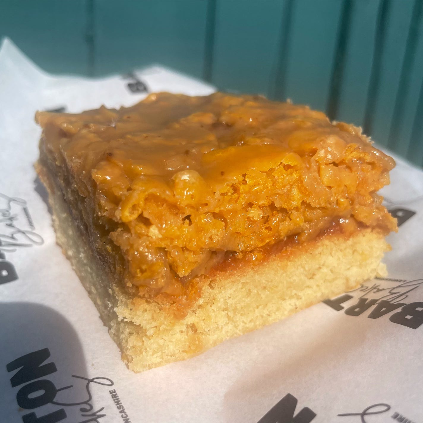 Introducing the Cornflake Tart Blondie - a deliciously crunchy and chewy treat packed with nostalgic flavors! Made with real cornflakes, folded in our homemade caramel sauce and a hint of jam, this blondie will have you reminiscing about simpler times. Snack time just got a whole lot sweeter!
