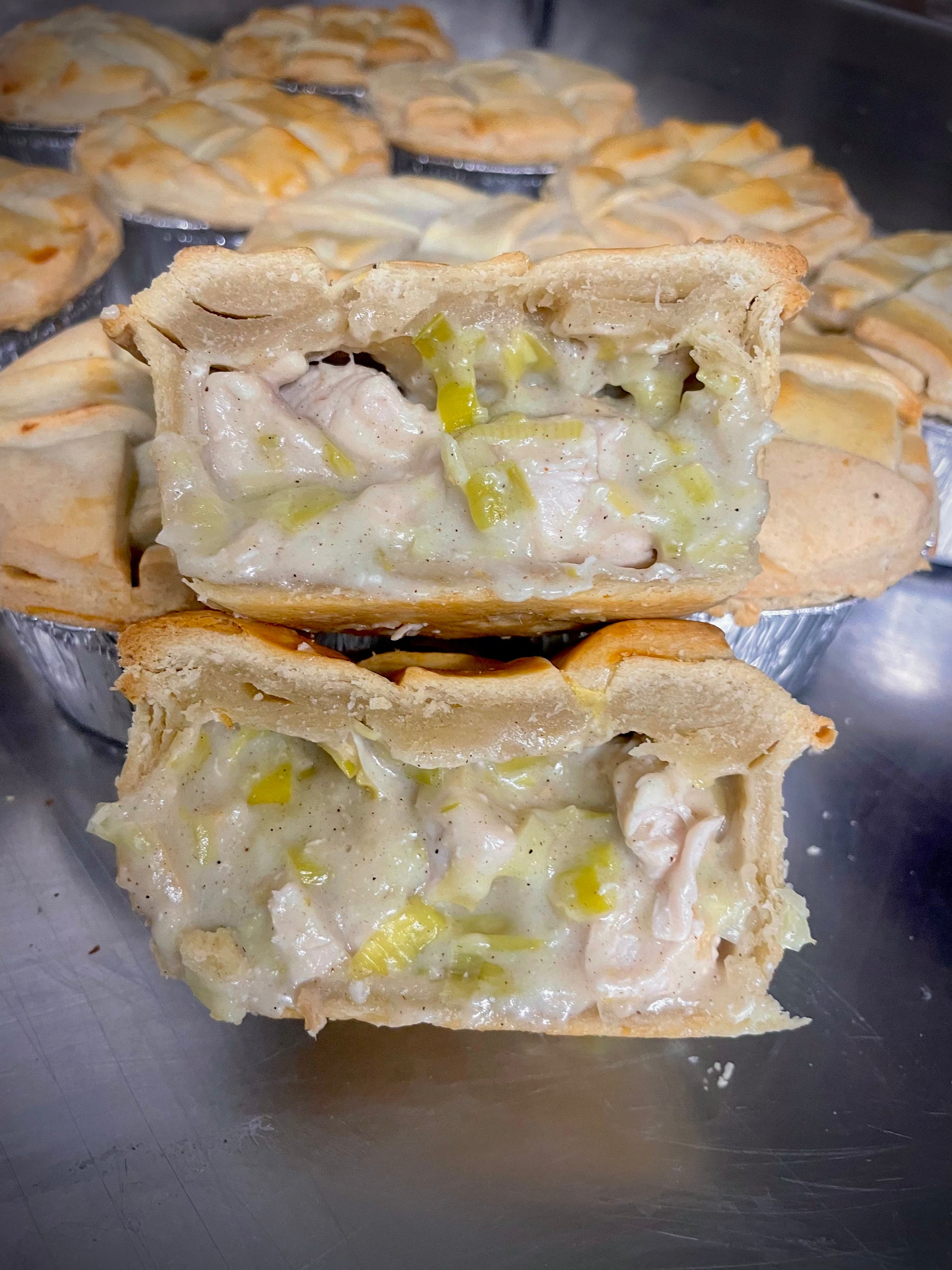 Tender Free Range Chicken Breast Chunks and Buttery Leeks combined in a moorish, homemade Chicken stock based creamy sauce and seasoned perfectly.