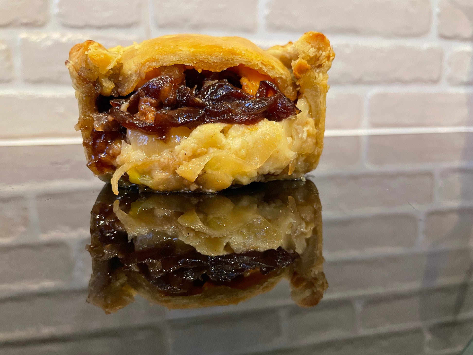 The perfect concoction of Procter's Cheeses award winning Lancashire cheese; Crumbly, Creamy, Kick-Ass Mature and Kick-Ass Smoked combined with Butter-poached Onions and Potato, topped with Caramelised Red Onion and Red Leicester, and seasoned perfectly to bring your tastebuds to life!