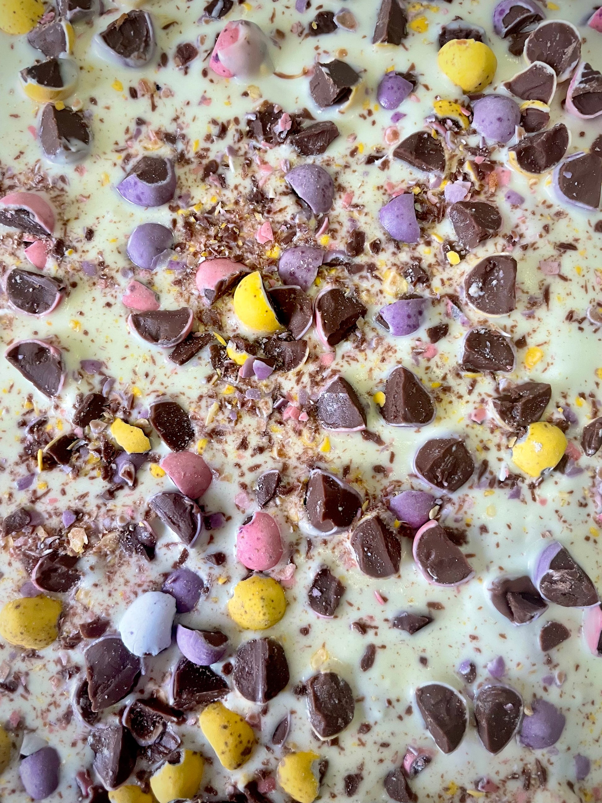 Each bite is packed with the creamy smoothness of white chocolate and the irresistible crunch of Cadbury Mini Eggs. Perfect for satisfying your sweet tooth and bringing a smile to your face.