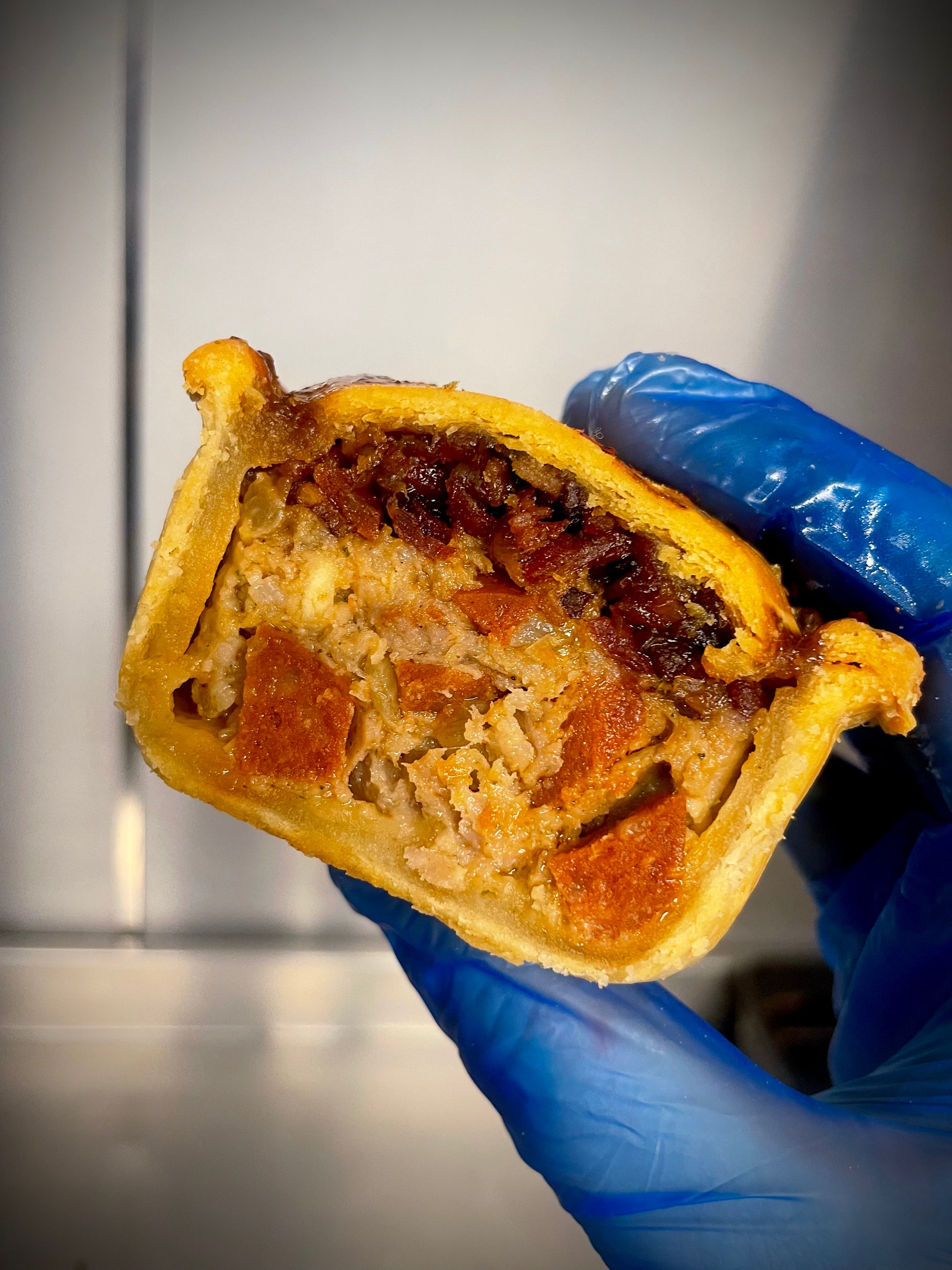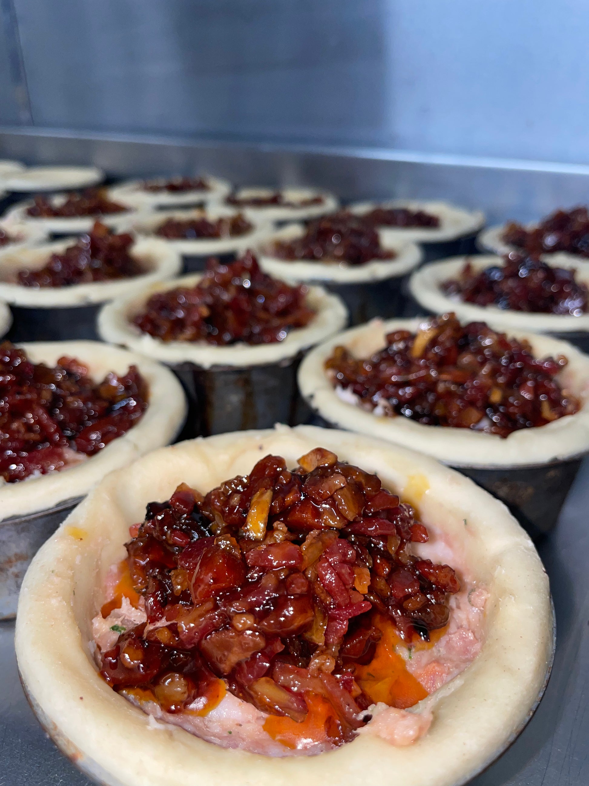 High-quality butchers sausage meat mixed with spicy, Spanish chorizo and seasoned to perfection. Finished off with our homemade smoky bacon and Jack Daniels chutney.